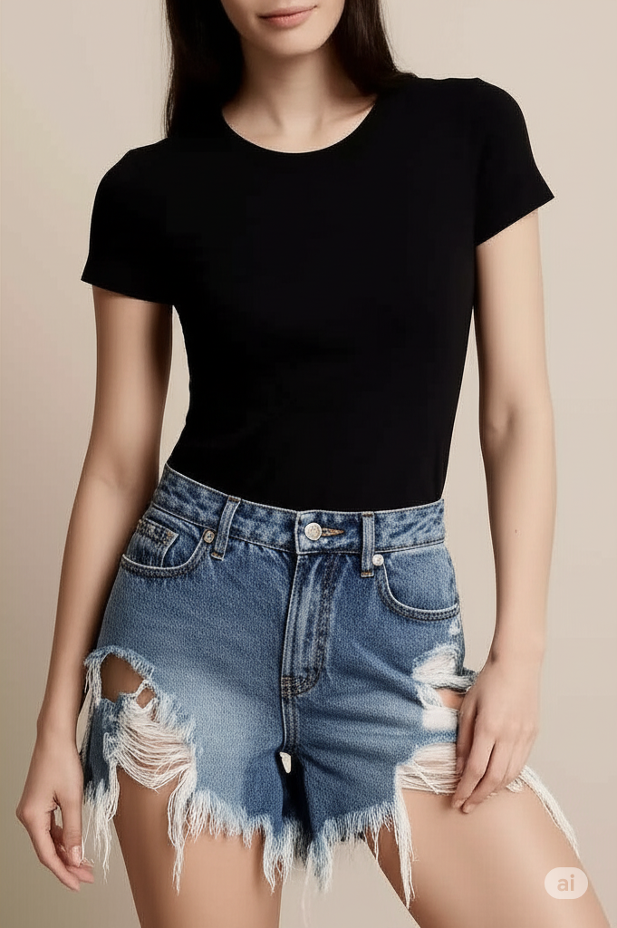 Step into ultimate comfort and casual chic with our meticulously designed distressed denim shorts, an indispensable addition to your warm-weather wardrobe. Crafted from high-quality, soft blue denim, these shorts offer both durability and a supremely comfortable fit that moves with you throughout your day. The authentic light blue wash is enhanced with tastefully placed distressed details and subtle rips, giving them a coveted, lived-in appeal without compromising on durability. Each pair features a stylish frayed hem, adding to their relaxed, carefree aesthetic and ensuring they stand out from ordinary denim. Designed for versatility, these shorts boast a classic five-pocket construction, providing practical storage while maintaining a sleek silhouette. The mid-rise waist offers a flattering fit for various body types, ensuring confidence with every wear. Whether you're heading to a casual brunch, enjoying a beach day, or simply running errands, these denim shorts are your go-to. Pair them with a simple tee for an understated look, a vibrant tank top for a pop of color, or even a flowy bohemian blouse to capture a more eclectic vibe. Easy to care for and built to last, these distressed denim shorts promise to be a long-standing favorite in your collection, blending timeless style with contemporary trends.