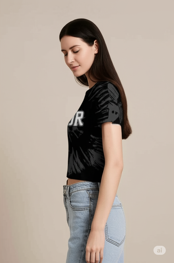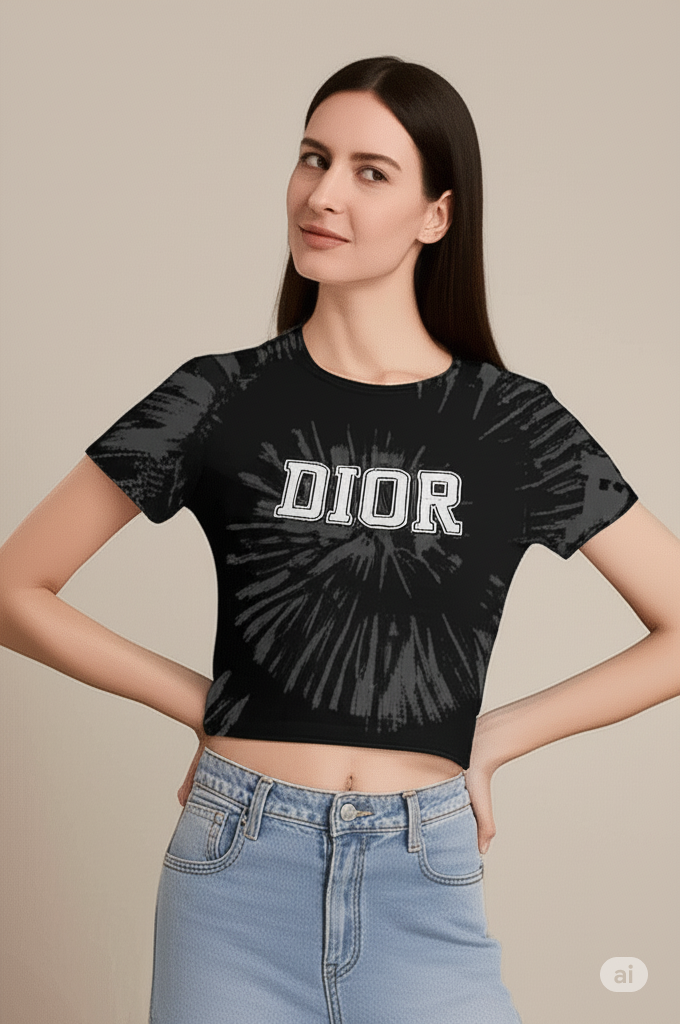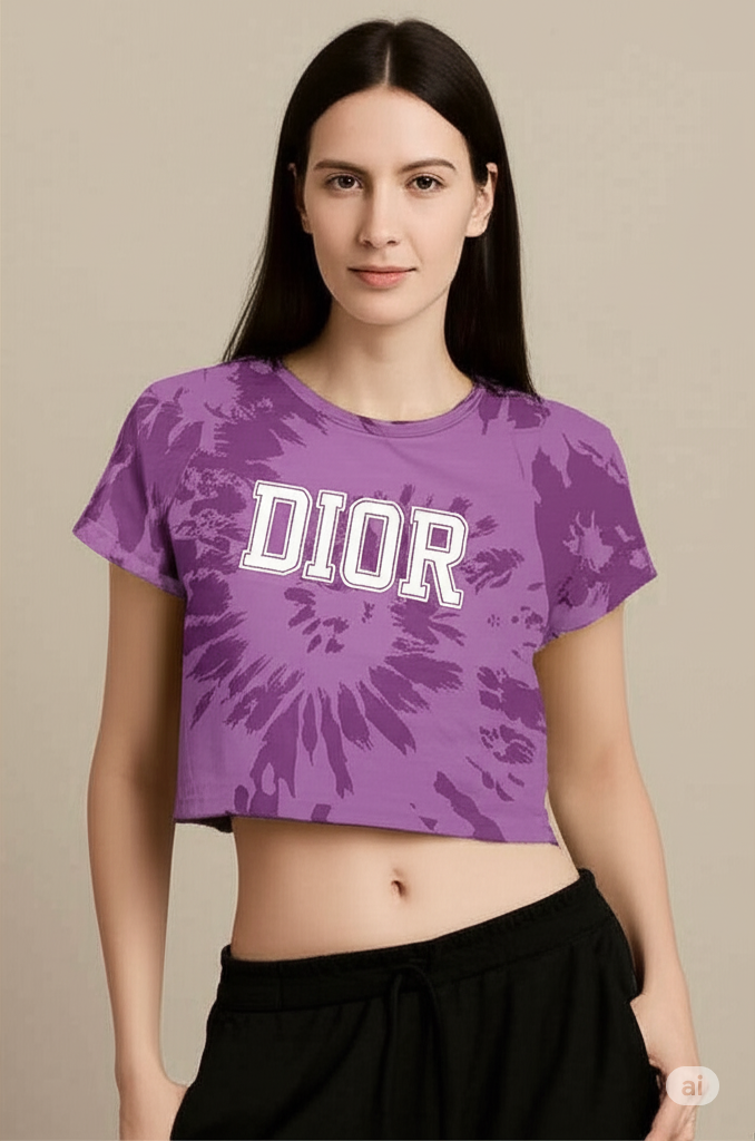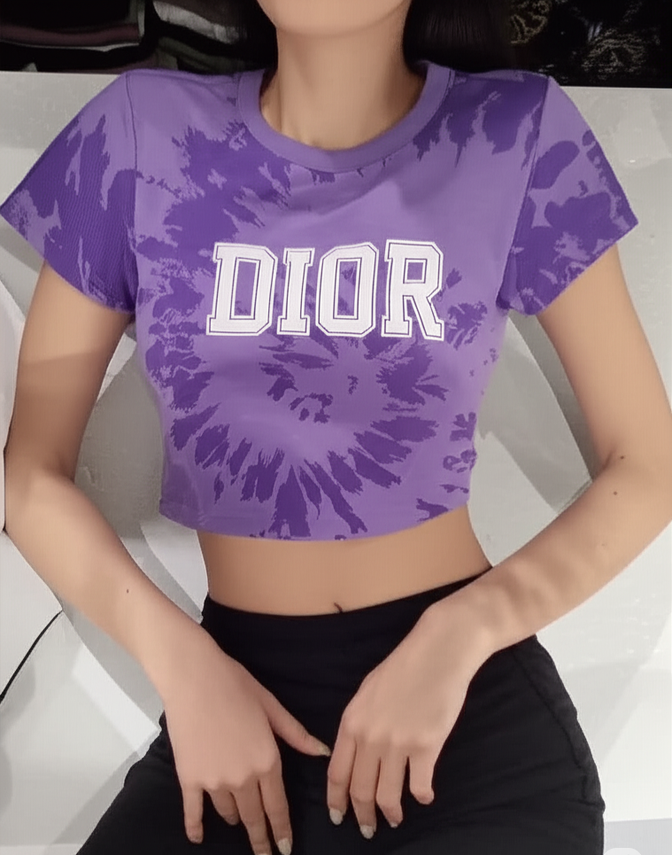 Make a bold fashion statement with this vibrant Christian Dior fitted crop top, designed to bring a touch of high-end streetwear to your wardrobe. Crafted from soft, breathable cotton, this eye-catching piece features a stunning lavender tie-dye pattern with a powerful burst design radiating from the center. The large "DIOR" logo in striking white block letters adds a modern, edgy appeal. With a flattering fitted silhouette and a classic crew neckline, this crop top pairs effortlessly with high-waisted jeans, shorts, or skirts for a chic, off-duty look. Whether you're hitting the streets or making a style statement at a casual outing, this crop top is your go-to for luxe comfort and standout vibes.
