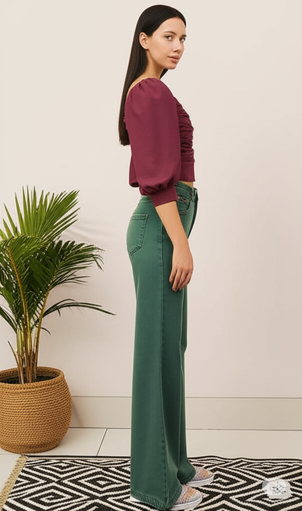 Effortless Style: The Perfect Dark Green Wide-Leg Jeans