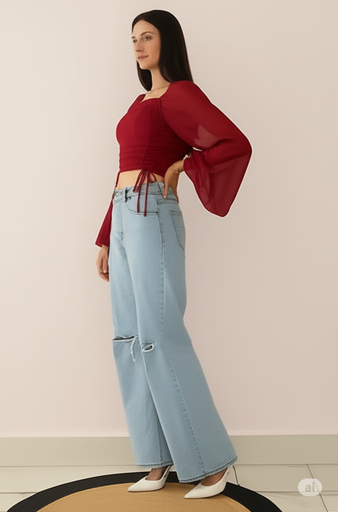 Step out in style with our trendy Ripped Light Blue Wide-Leg Jeans, designed to blend comfort with an effortlessly chic aesthetic. Crafted from high-quality, durable denim, these jeans feature a relaxed wide-leg silhouette that offers both freedom of movement and a contemporary look.