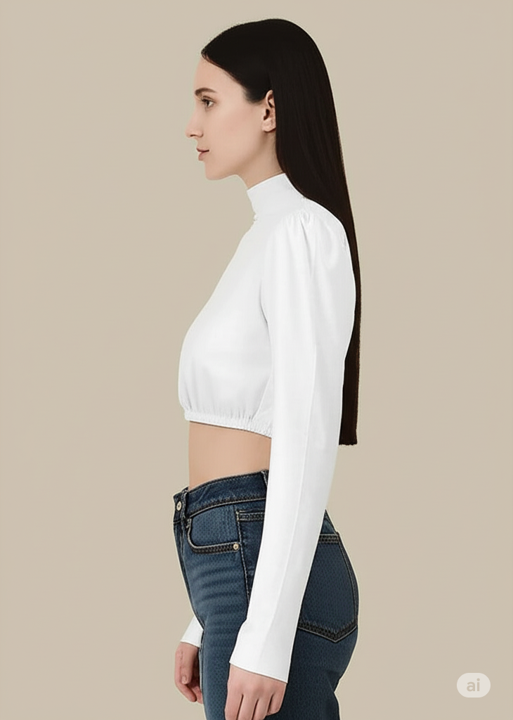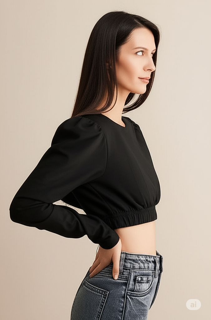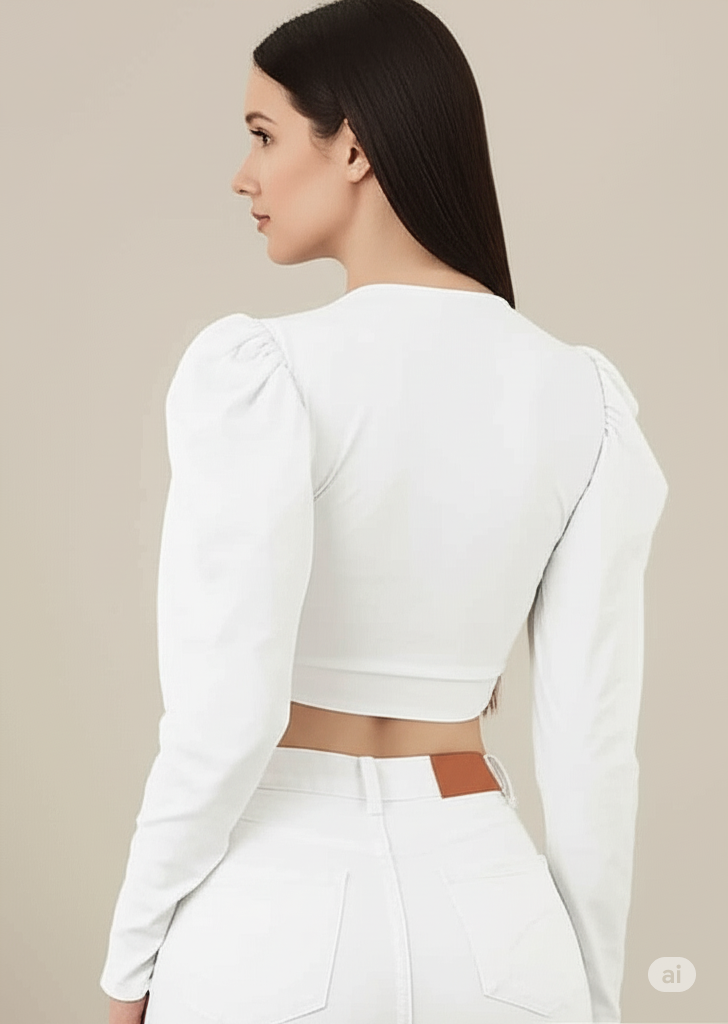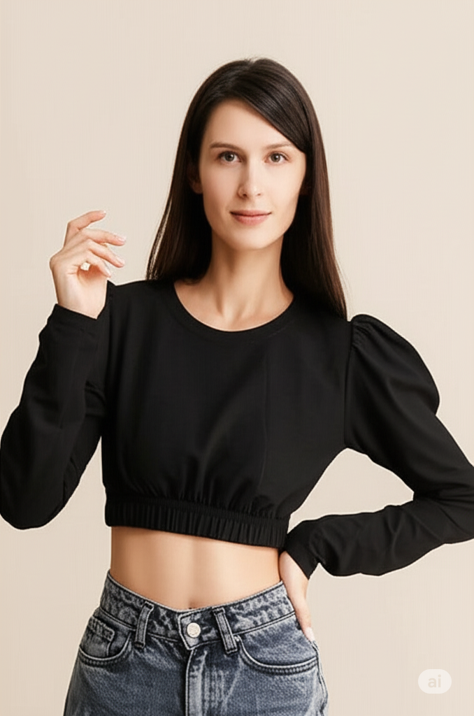 Elevate your wardrobe with this stylish and versatile black/white cropped top. Featuring a classic crew neck and a flattering fitted silhouette, this top is designed to hug your curves in all the right places. The star of the show is the dramatic puff sleeves, which add a touch of modern sophistication and a fashion-forward edge. Made from a comfortable, stretchable fabric with a ruched elastic hem, this top is perfect for pairing with high-waisted jeans, skirts, or trousers for a chic, put-together look. Whether you're heading out for a casual day or a night on the town, this top is a must-have for a confident and trendy style.