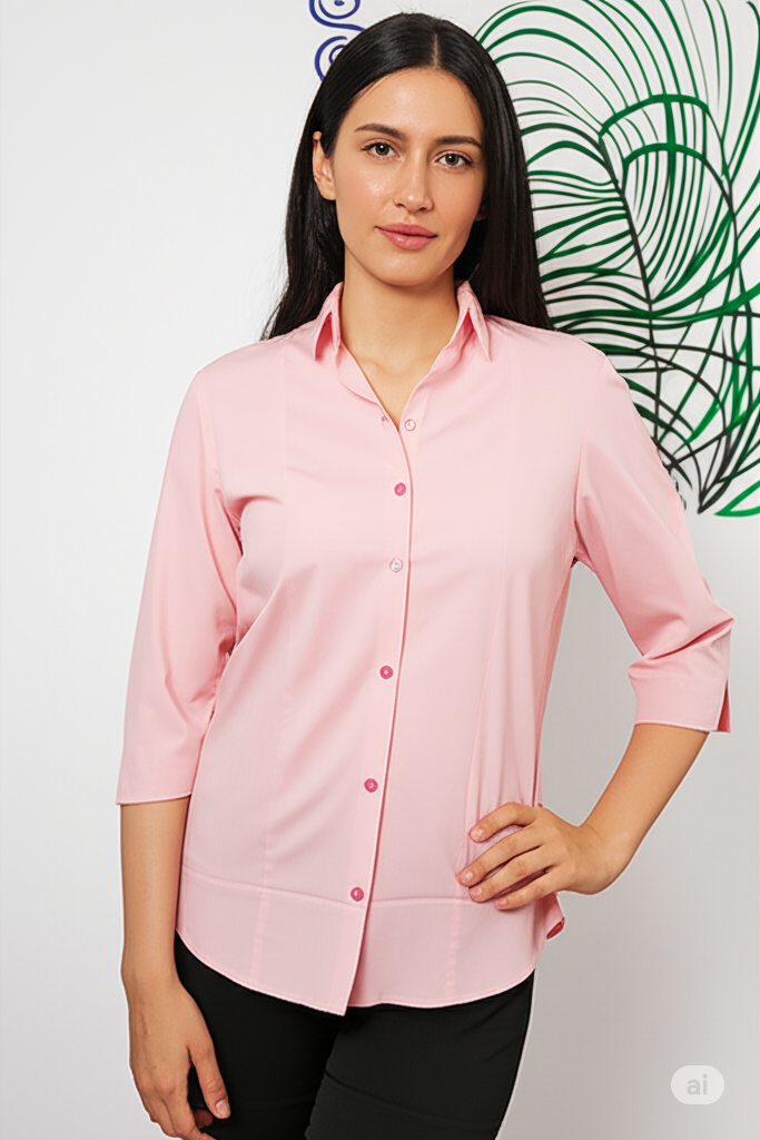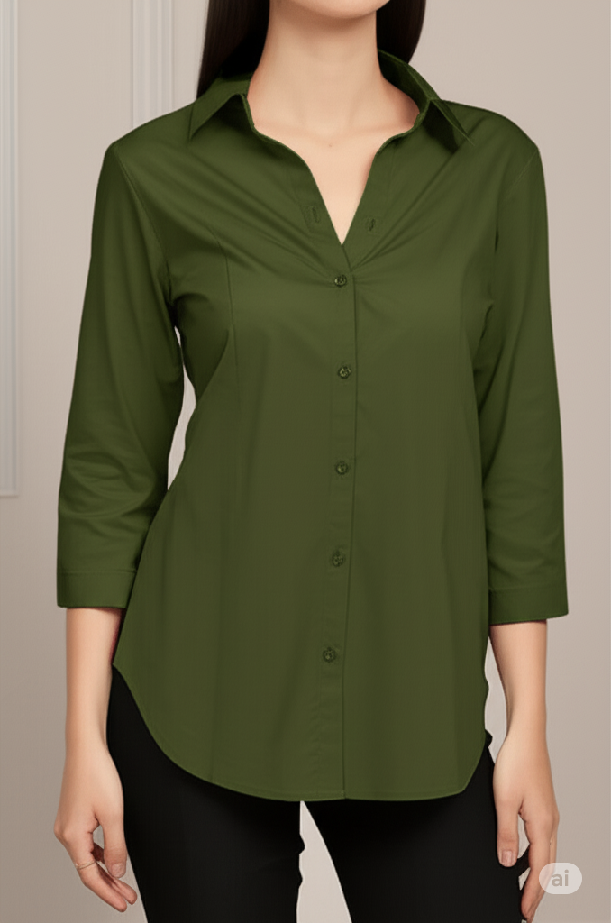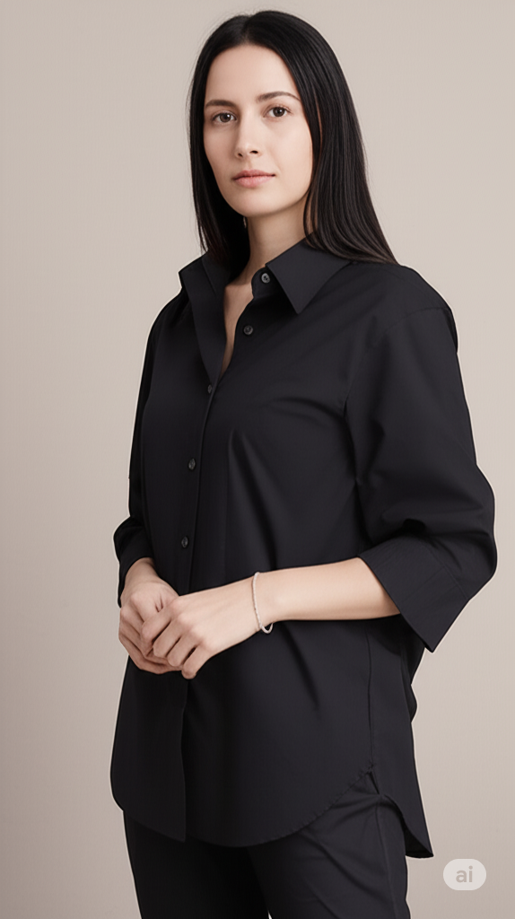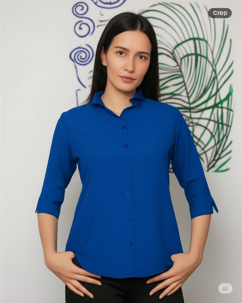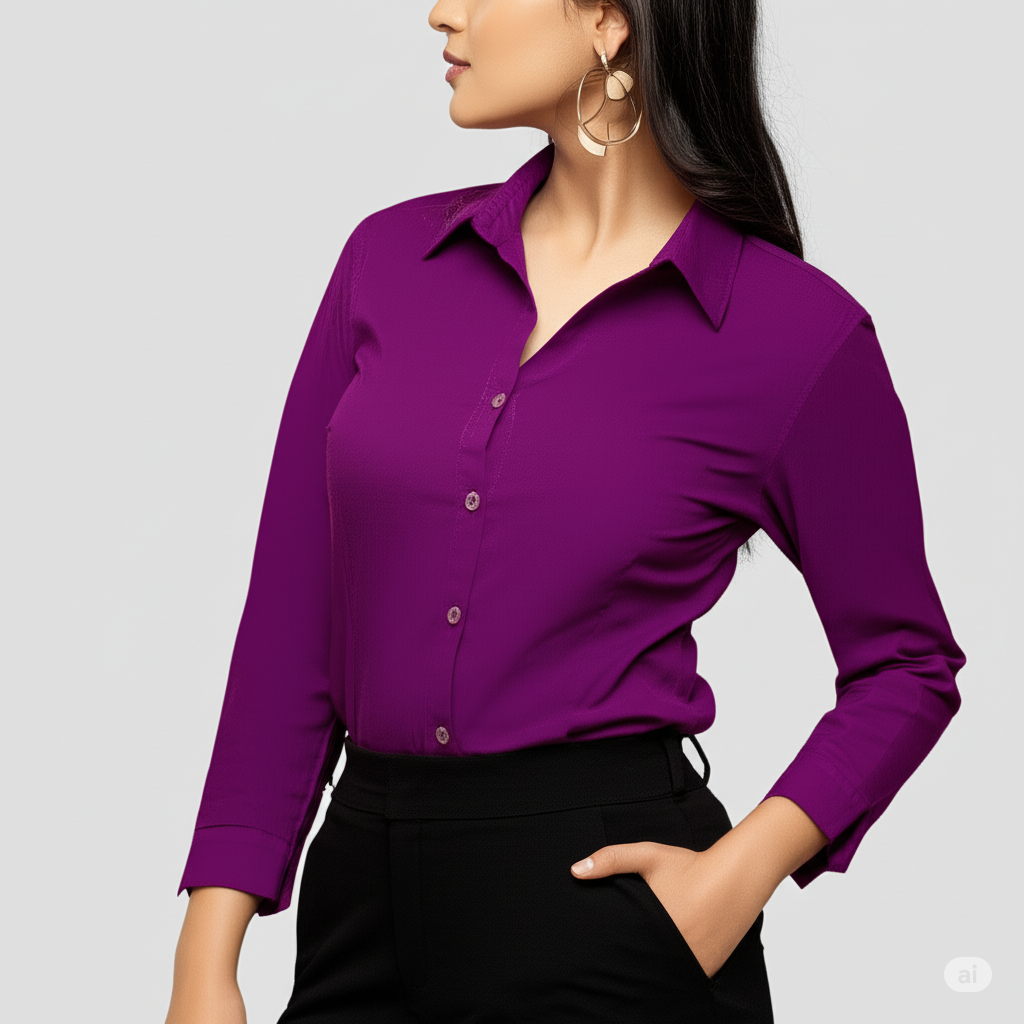 "Elevate your professional and everyday wardrobe with this meticulously tailored button-down shirt. Designed for a flattering fit, it features a classic collar and long sleeves with elegantly flared cuffs, adding a touch of sophistication to your ensemble. The smooth, crisp fabric ensures comfort and a polished look, perfect for diverse styling – whether tucked into high-waisted trousers or worn casually. A versatile essential that seamlessly transitions from office hours to evening engagements."