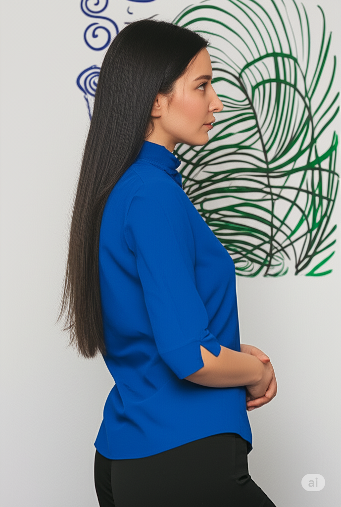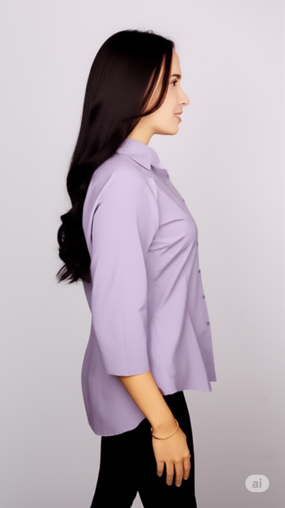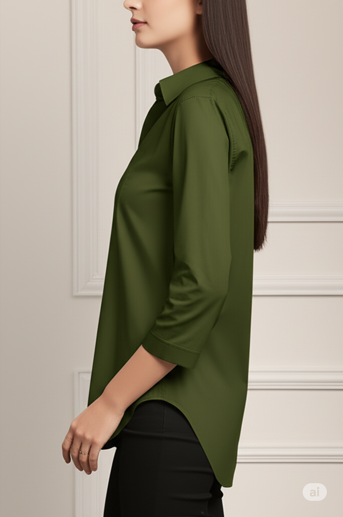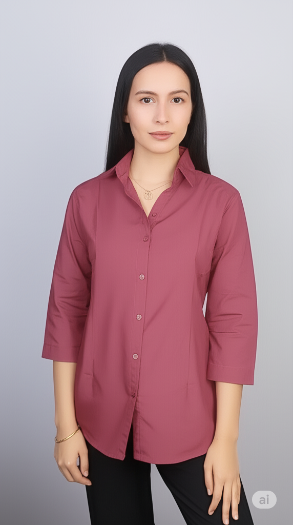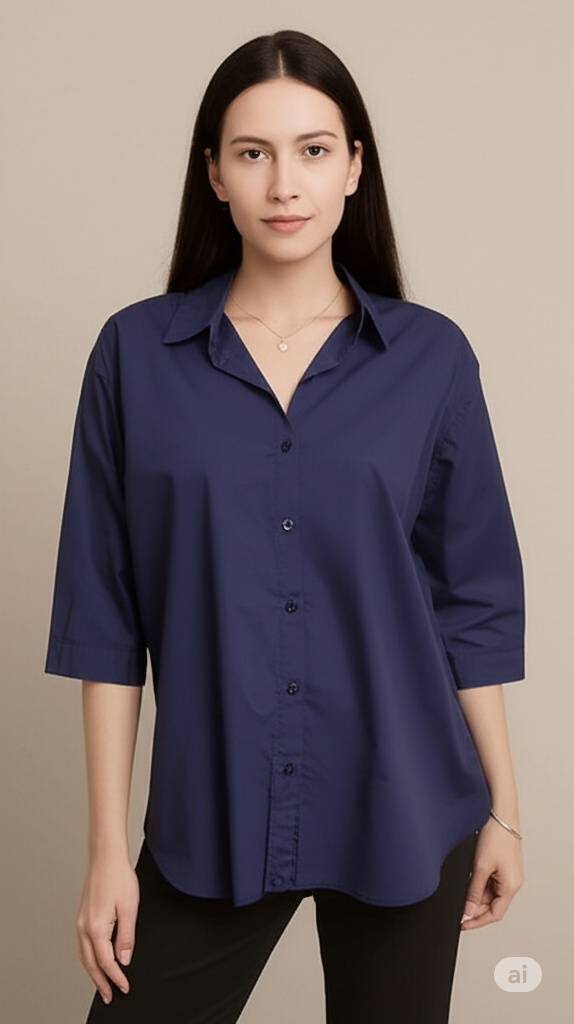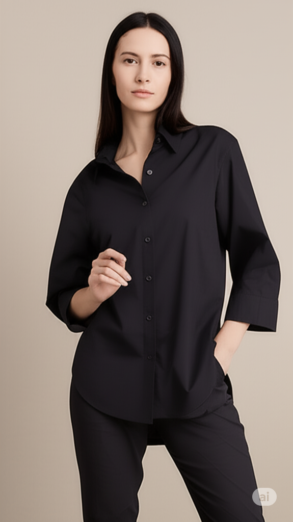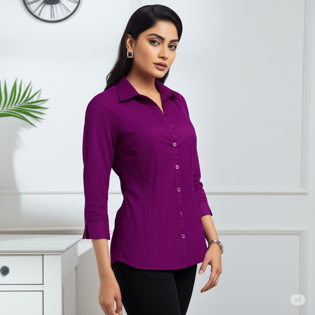 "Elevate your professional and everyday wardrobe with this meticulously tailored button-down shirt. Designed for a flattering fit, it features a classic collar and long sleeves with elegantly flared cuffs, adding a touch of sophistication to your ensemble. The smooth, crisp fabric ensures comfort and a polished look, perfect for diverse styling – whether tucked into high-waisted trousers or worn casually. A versatile essential that seamlessly transitions from office hours to evening engagements."