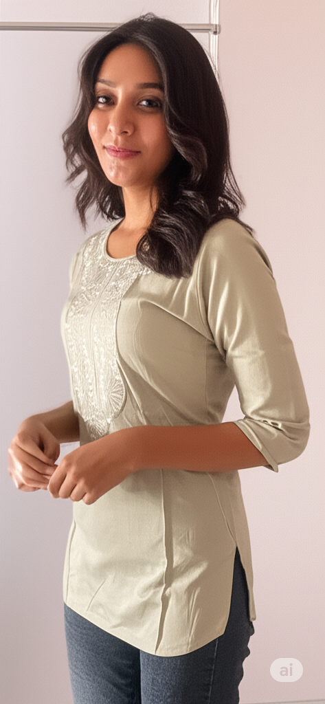 Elevate Your Everyday Style: Discover comfort and sophistication with our beautifully embroidered short kurta, designed for the modern woman who values both tradition and contemporary fashion. Perfect for adding a touch of grace to your daily ensemble or dressing up for a casual outing.